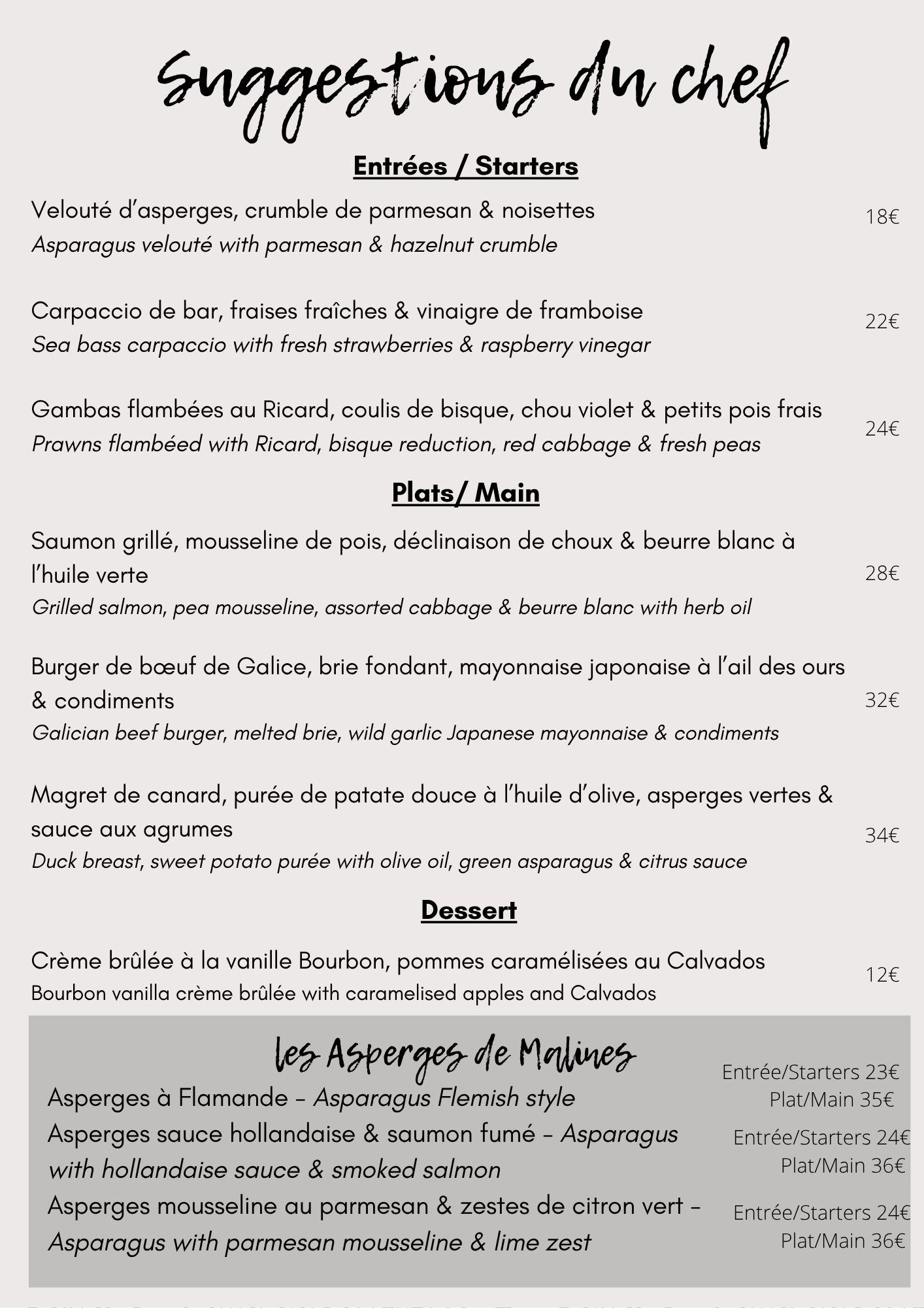 Notre chef vous propose un nouveau concept novateur qui fera saliver vos papilles avec des plats et des suggestions d'exception.